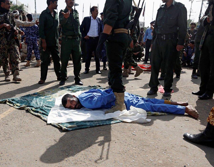 | إعدام مغتصب يمني بمدفع رشاش امام العامة -صور |