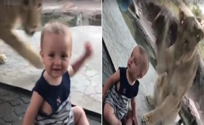 | أسد يحاول الفتك برضيع بحديقة حيوان - فيديو ظريف .. |