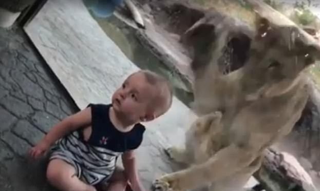 | رد فعل غريب لطفل هاجمه أسد-فيديو |