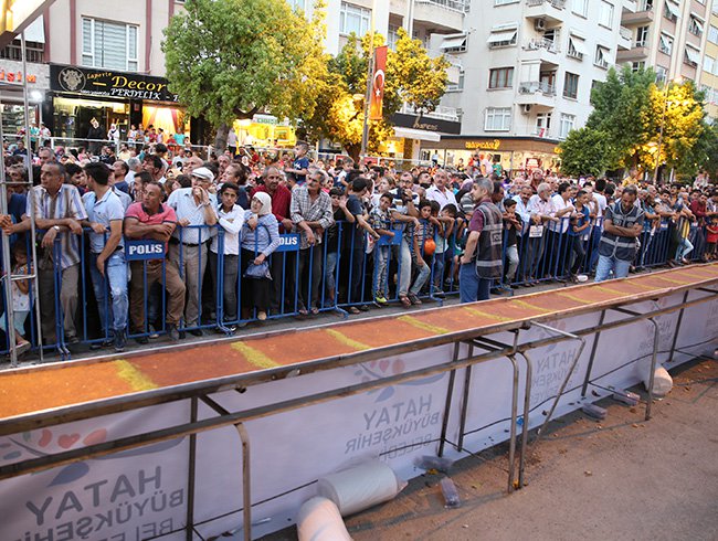 ضمن إطار احتفالات ولاية هاتاي بالذكرى 78 لانضمامها إلى تركيا، صنعت بلدية هاتاي الكبرى طبق كنافة بطول 78 متر، وقدمتها للمواطنين المشاركين في مركز المدينة.وأقامت البلدية... |