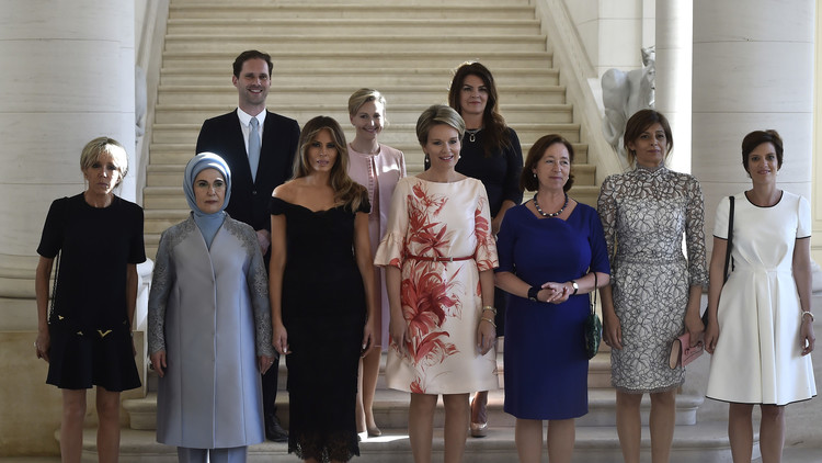 | رجل يظهر في صورة زوجات زعماء الناتو |