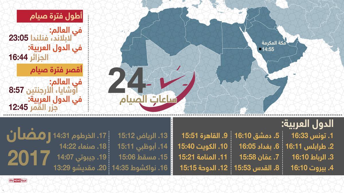 | إنفوغرافيك .. أطول وأقصر ساعات الصيام عربيا وعالميا |