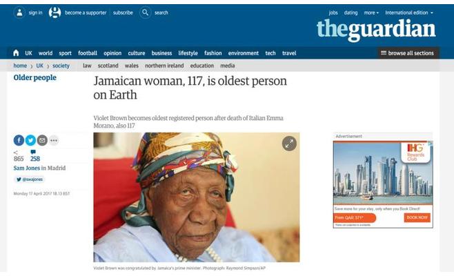 | جامايكية عمرها 117 سنة أكبر معمرة في العالم |