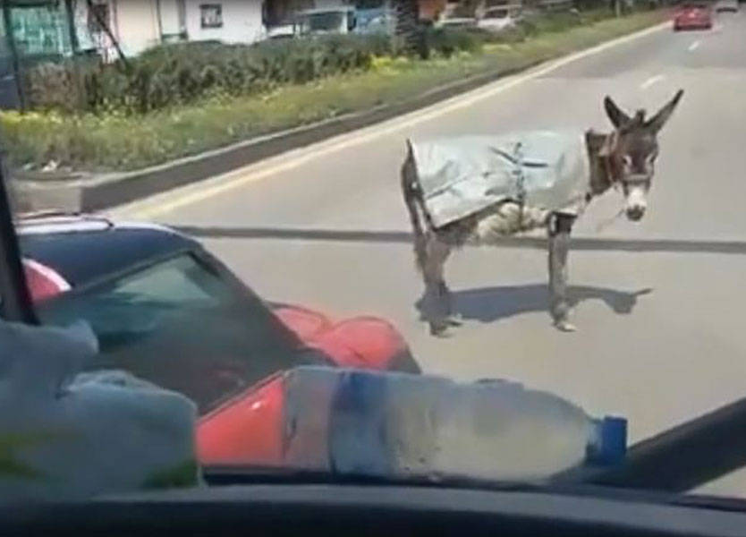 | من غرائب لبنان: حمار يعرقل السير! |