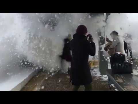 | قطار يثير عاصفة ثلجية ويروع الركاب - فيديو |