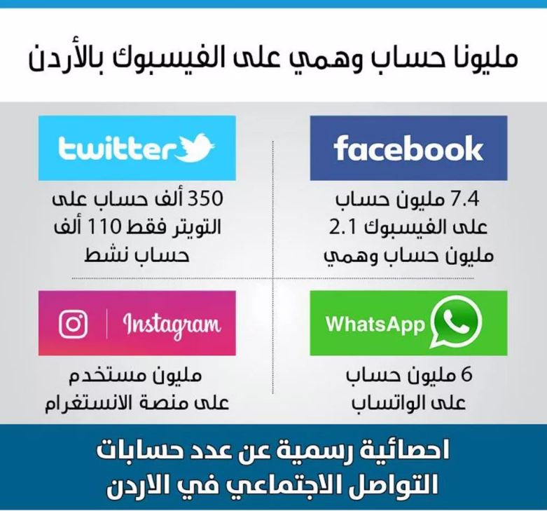 | مليونا حساب وهمي على الفيس بوك بالأردن |