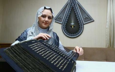 | أذربيجانية تنجز أول مصحف مكتوب على الحرير - صور |