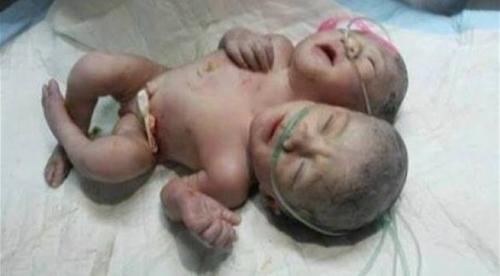 | غزة : حالة ولادة نادرة لتوأم سيامي بجسد واحد ورأسين |