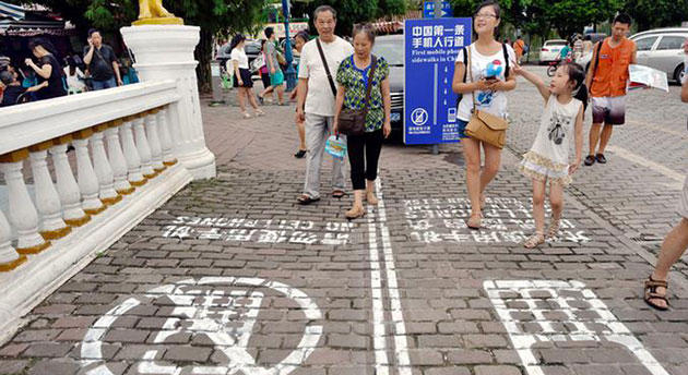| للمنشغلين بهواتفهم .. أصبح لكم أرصفة خاصة في الصين |