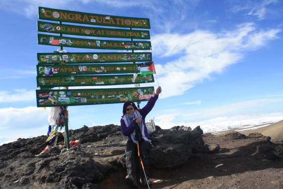 | فلسطينية تتسلق رابع أعلى قمة جبل في العالم بقدم واحد |