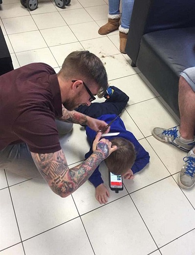 | أم تندهش من معاملة الحلاق لطفلها .. صور |