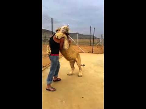 | أسد يعانق فتاة بطريقة مدهشة - فيديو |