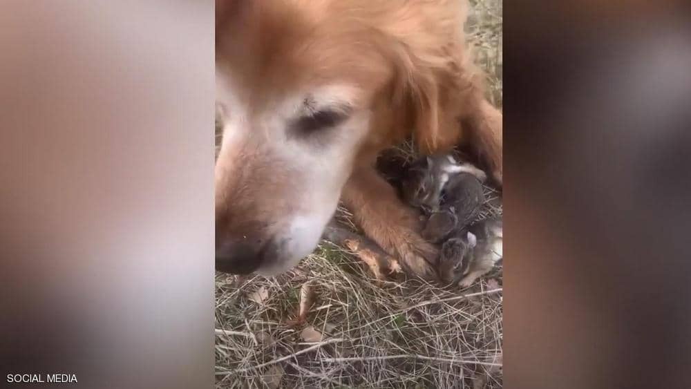 | كلب يرعى مجموعة أرانب فقدت والدتها - فيديو |