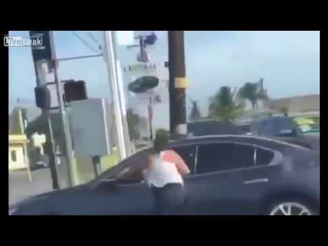 | بالفيديو: امرأة تتعلق بسيارة زوجها بعد ضبطه مع فتاة بداخلها |