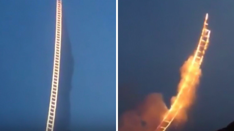| بالفيديو .. فنان يخترع سلما صاعد إلى السماء!! |