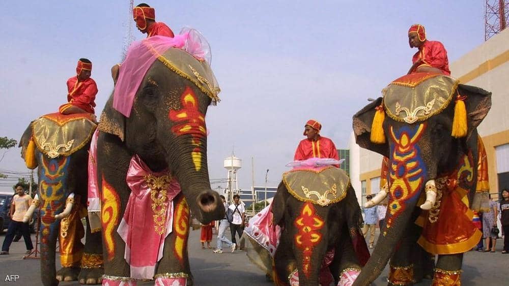 | في عيد الحب .. زفاف جماعي على ظهور الأفيال |