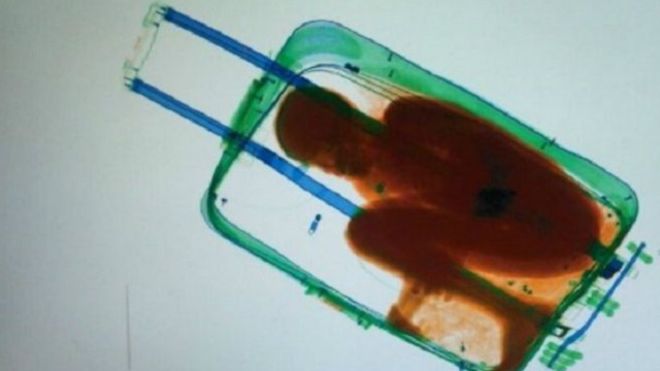 | أشعة إكس تكشف عن تهريب طفل في حقيبة |