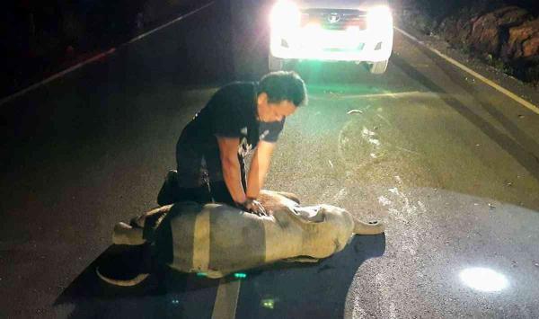| في مهمة عاجلة .. تايلندي ينعش قلب فيل كاد ينفق |