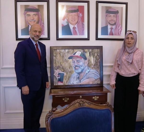 | الرزاز يستقبل الفنانة حياصات التي رسمته |