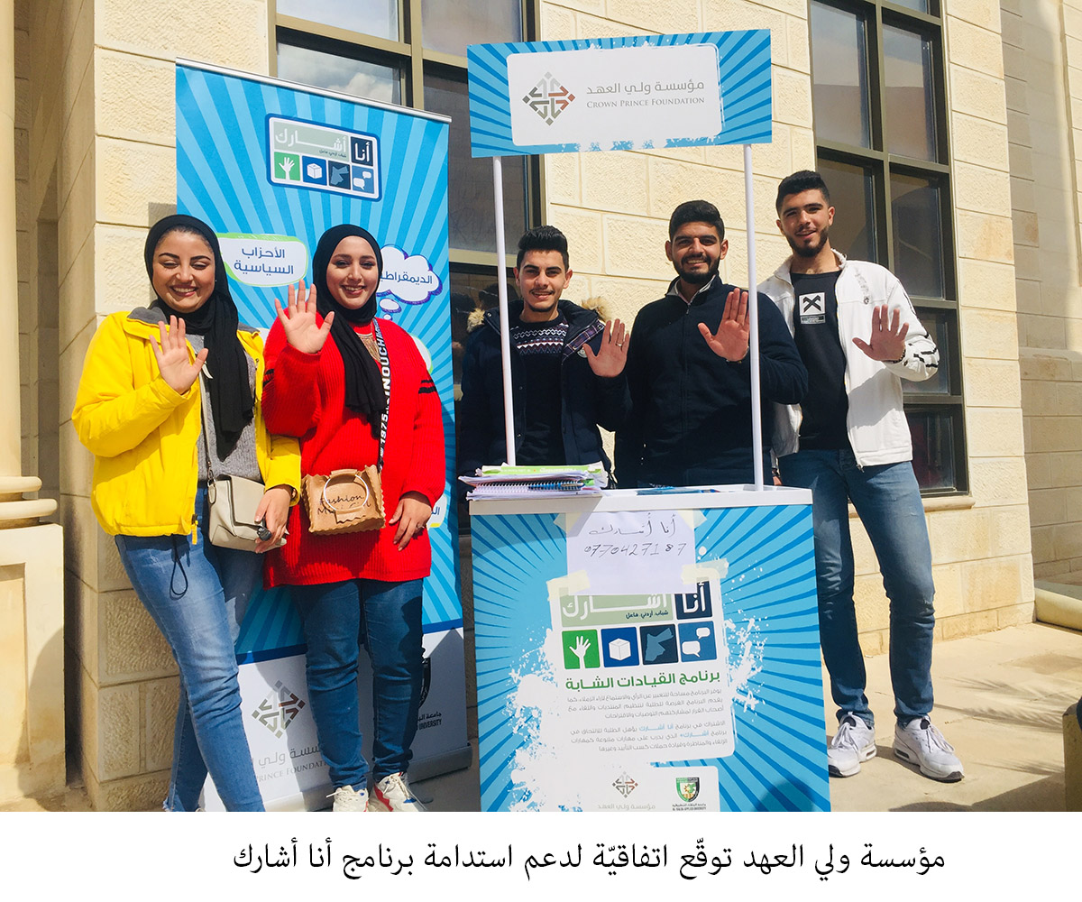 وقعت مؤسسة ولي العهد اتفاقيّة مع المعهد الديمقراطي الوطني والوكالة الأميركية للتنمية الدولية، لتنفيذ برنامج استدامة أنا أشارك الذي يهدف إلى بناء قدرات ومهارات طلبة الجامعات... |