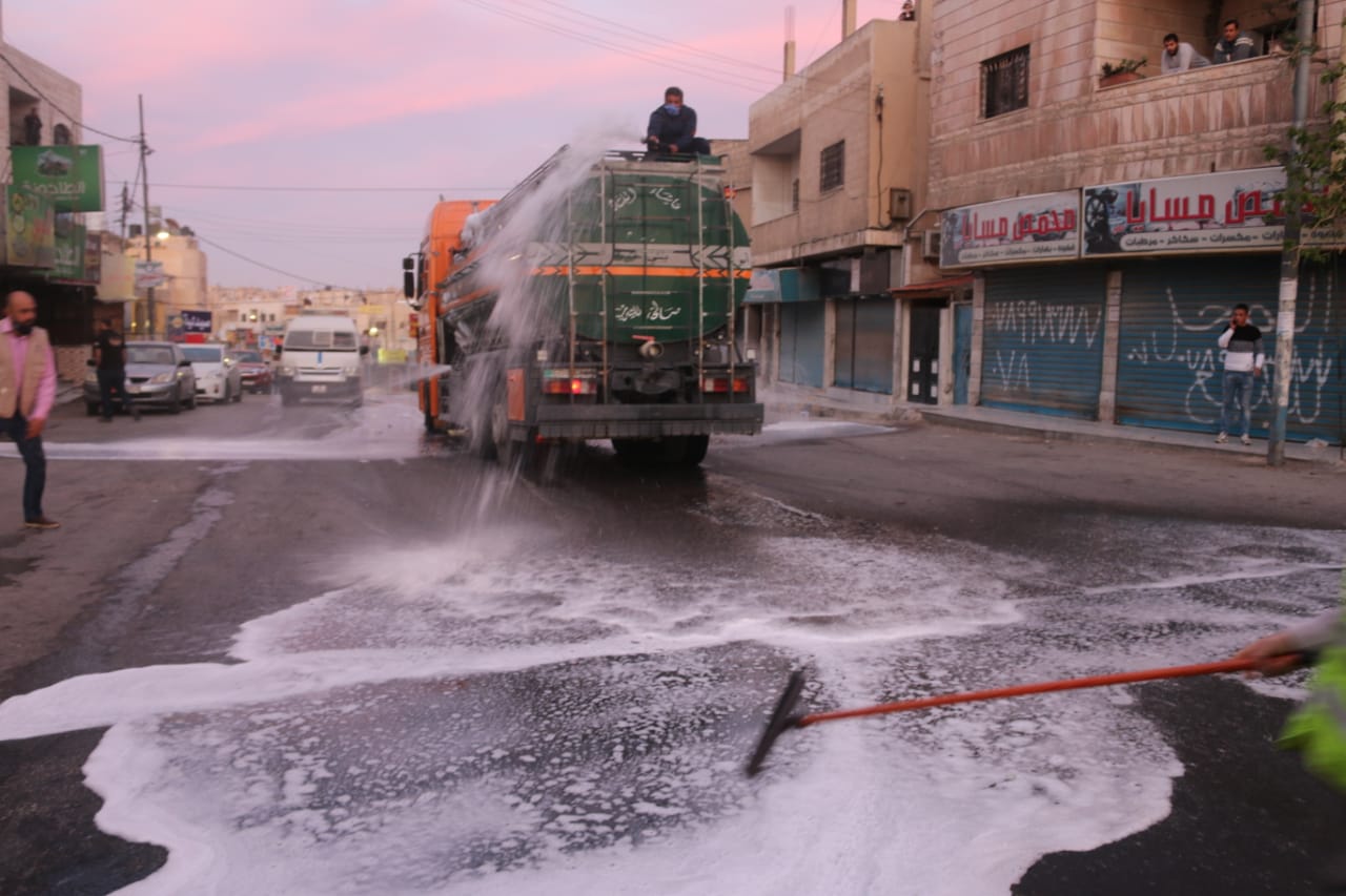 | حملة غسيل لشوارع الزرقاء بالماء والمعقمات |