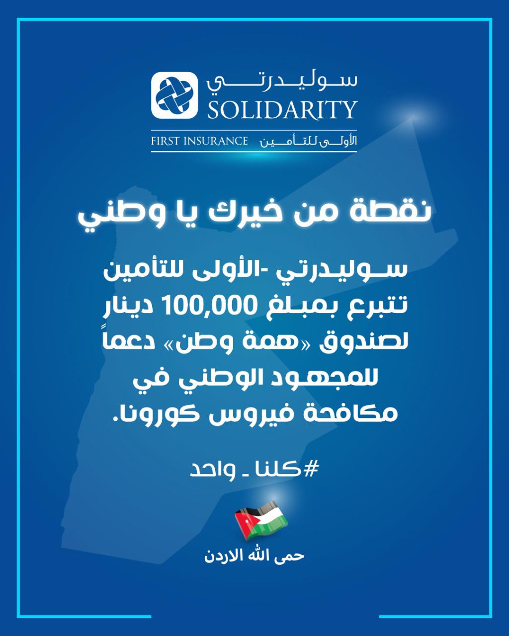 | سوليدرتي الأولى للتأمين تتبرع بمبلغ 100 الف دينار |