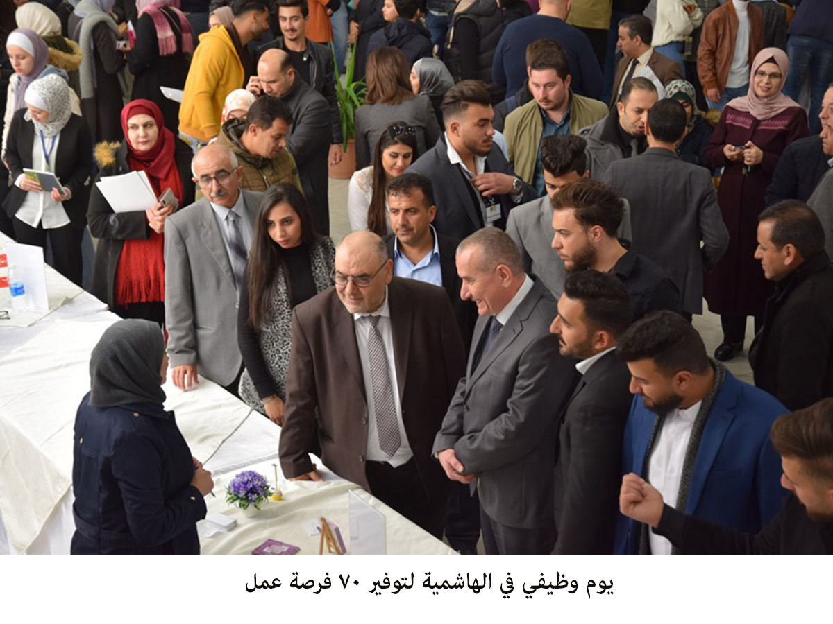 نظم مركز الإرشاد الوظيفي في الجامعة الهاشمية، يوما وظيفيا لتوفير 70 فرصة عمل لطلبة الجامعة وخريجيها.وشاركت في المعرض عشرون شركة إدارية ومالية وطبية ودوائية وتجارية وتعليمية... |