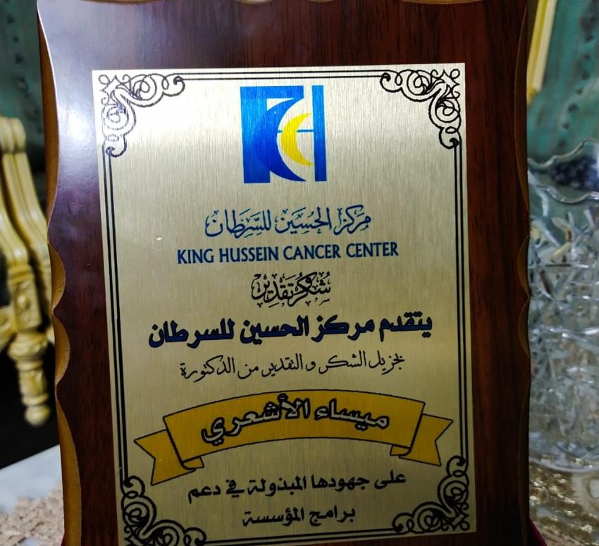 | الحسين للسرطان يكرم استشارية التغذية ميساء الأشعري |