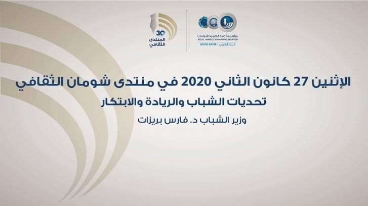| بريزات يحاضر في شومان عن تحديات الشباب والابتكار الإثنين |