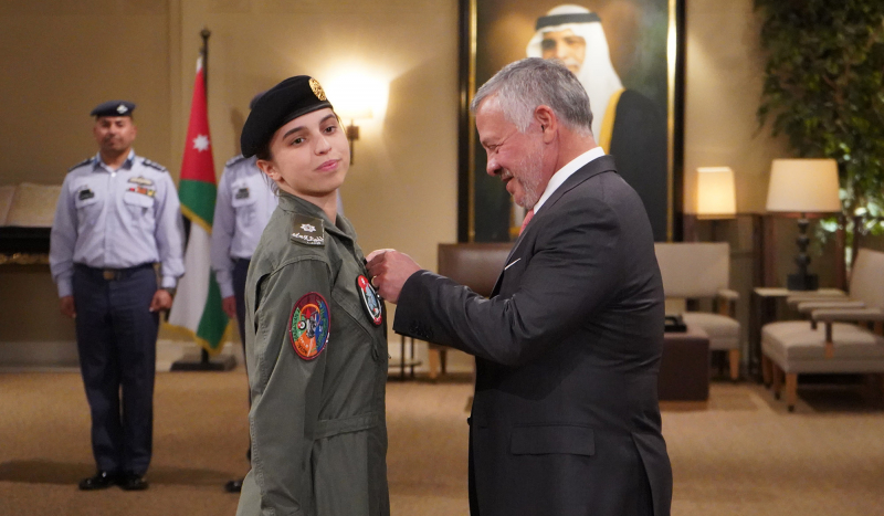 قلد الملك عبدالله الثاني، القائد الأعلى للقوات المسلحة، بحضور الملكة رانيا العبدالله والأمير الحسين بن عبدالله الثاني ولي العهد، في قصر الحسينية الأربعاء، الأميرة سلمى بنت... |