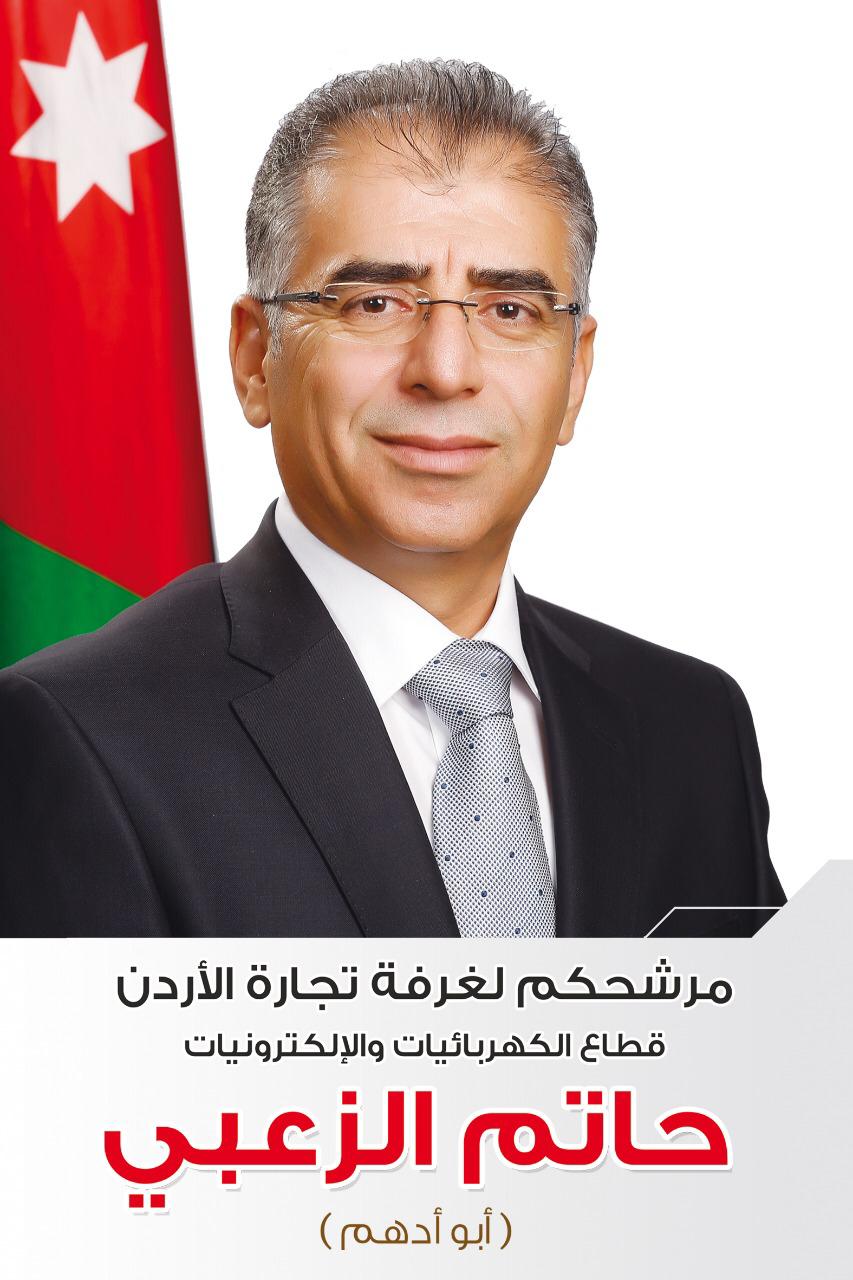 اعلن رجل الأعمال الأردني حاتم الزعبي ترشحه لغرفة تجارة الأردن ممثلاً عن قطاع الكهربائيات والالكترونيات. وتالياً سيرته الذاتية: |