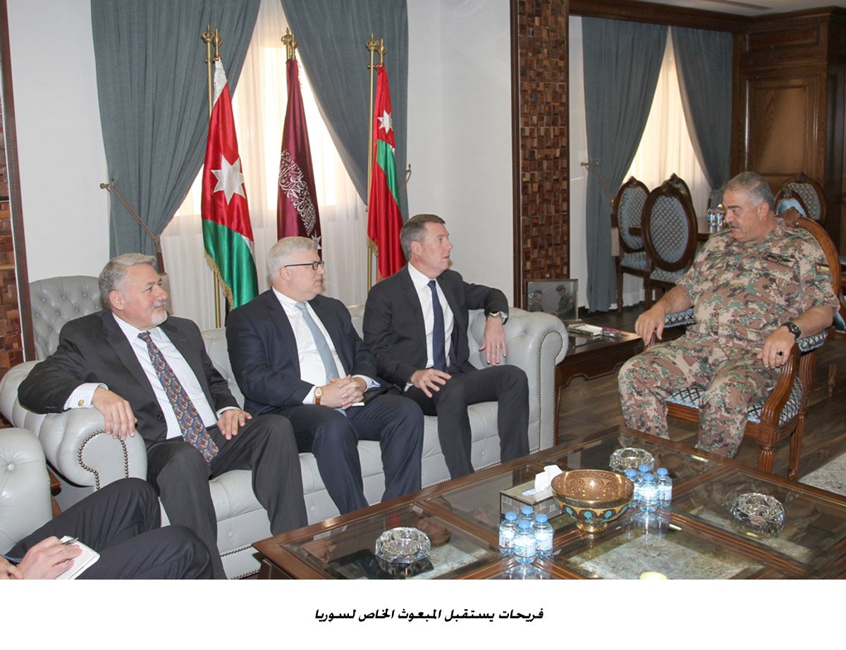 استقبل رئيس هيئة الأركان المشتركة الفريق الركن محمود عبدالحليم فريحات، اليوم الأربعاء، مساعد وزير الخارجية لشؤون بلاد الشام والمبعوث الخاص لسوريا جول رايبرن، يرافقه نائب... |