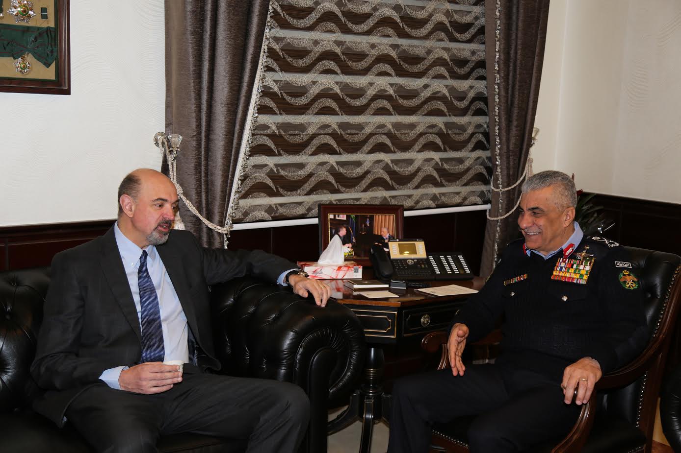 استقبل مدير الأمن العام اللواء الركن احمد سرحان الفقيه في مكتبه اليوم كل من السفير الاسترالي في المملكة مايلز ارمتياج والسفير الصيني بان ويفانغ والسفير التركي مراد كاراغوز... |