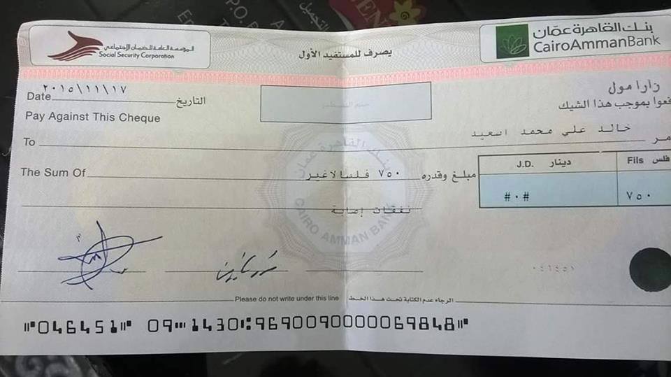 أحمد أبو جعفر - اثار شيك بنكي صادر عن مؤسسة الضمان الاجتماعي بقيمة 75 قرشا ، نشطاء مواقع التواصل الاجتماعي ، وسرعان ما انتشر الشيك بشكل سريع ، حول المبلغ البخس بأن يصرف به... |