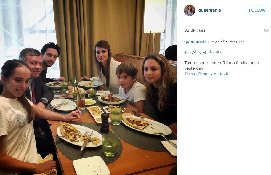 نشرت جلالة الملكة رانيا العبدالله صورة للعائلة المالكة مجتمعة في نيويورك ، على مائدة الغداء .وعلقت جلالتها على الصورة قائلة : 'غداء برفقة العائلة يوم أمس ... Taking... |