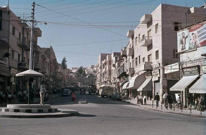 صورة تعود إلى عام 1956 وجرى تلوينها من المصدر.الصورة للجزء الشمال الغربي من ساحة فيصل – وسط البلد، عند التقاء شارعي السلط – الملك حسين – والأمير محمد، حيث يلتقيان بشارعي... |