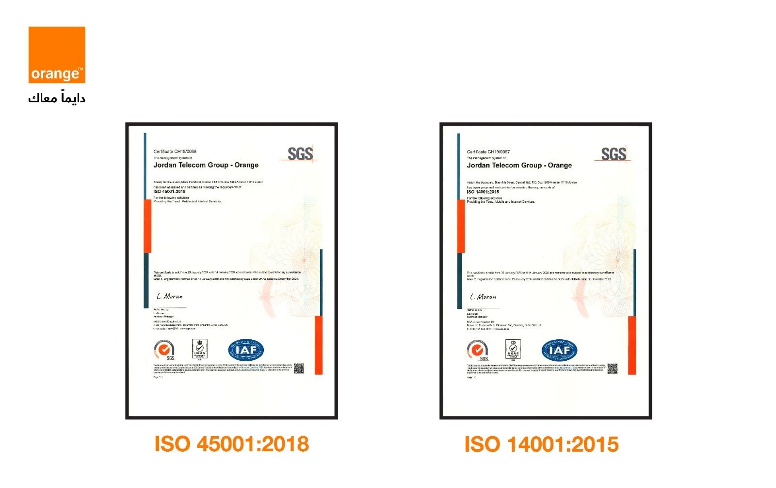 | أورنج الأردن تؤكد ريادتها في معايير السلامة المهنية والبيئة بتجديد شهادتيّ الأيزو |