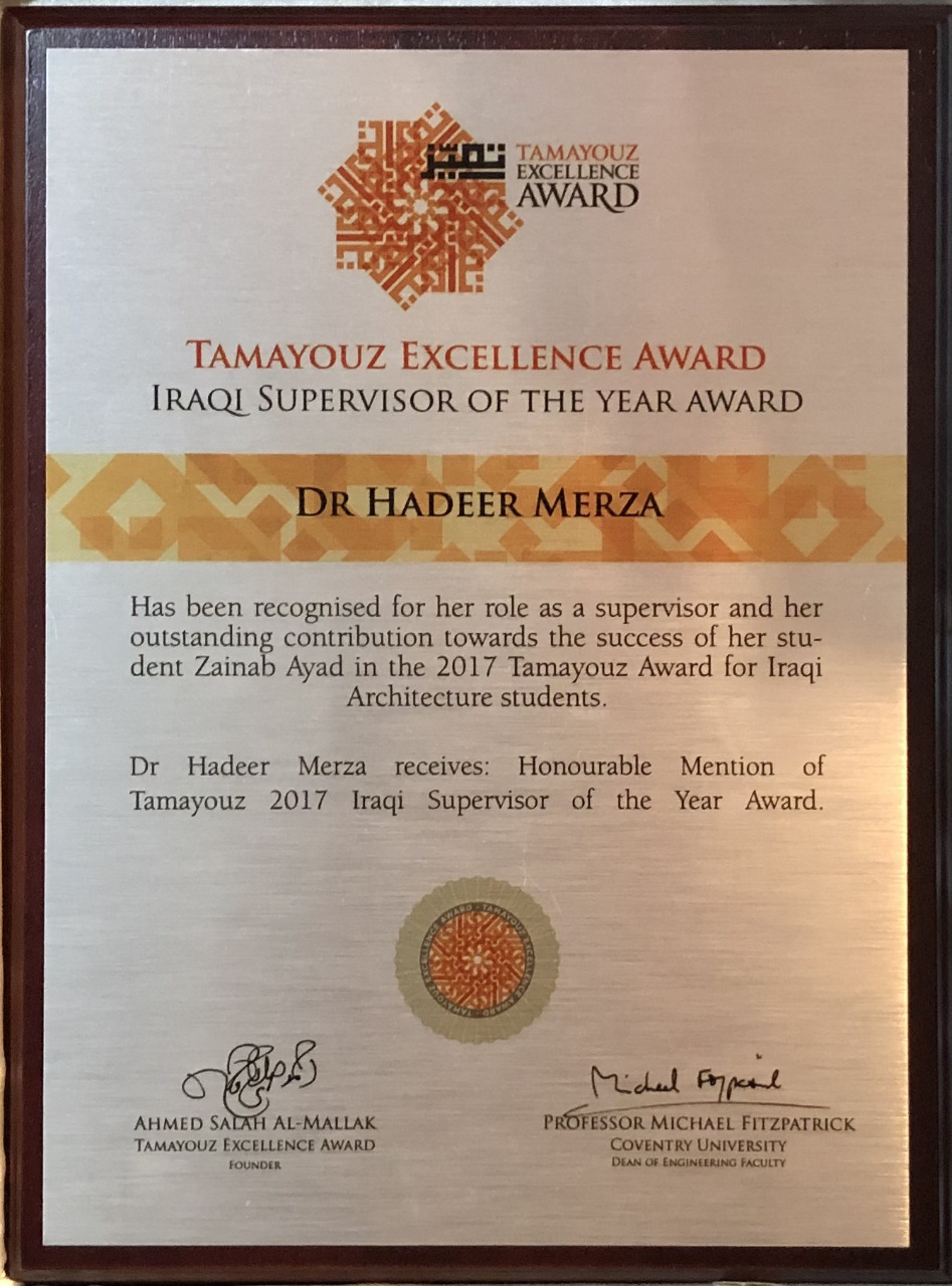 قدمت إدارة مسابقة تميز المعمارية جائزة هشم منير إلى كل من الدكتورة هدير مرزه والمهندسة ياسمين السعودي عضوتي هيئة التدريس في كلية العمارة والتصميم في جامعة البترا.وكرمت... |