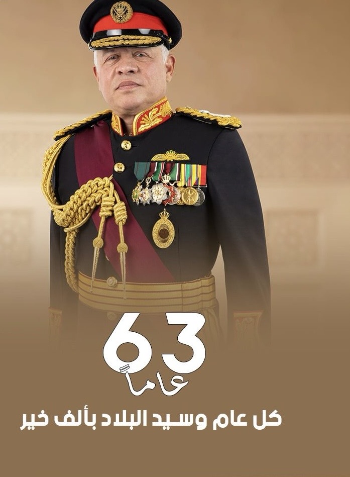 تتقدم أسرة موقع أحداث اليوم الإخباري بأسمى آيات التهنئة والتبريك إلى مقام حضرة صاحب الجلالة الهاشمية، الملك عبد الله الثاني ابن الحسين، بمناسبة عيد ميلاده الثالث والستين،... |