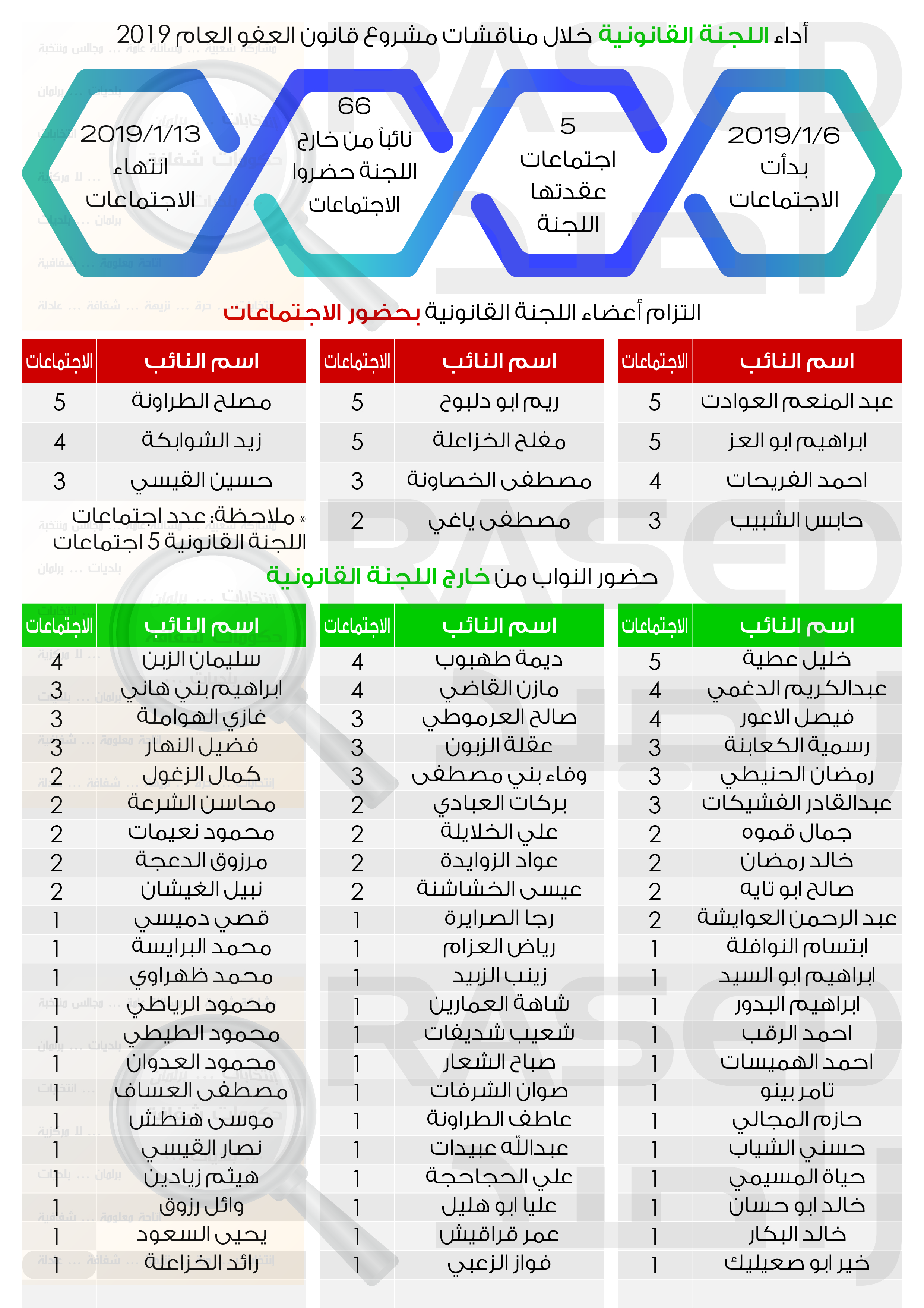 تتبع راصد لمراقبة أداء البرلمان أداء مجلس النواب خلال مناقشات مشروع قانون العفو العام، ايماناً منه بتكريس الشفافية والرقابة كأداة حقيقية في عملية الإصلاح البرلماني.واتخذ... |
