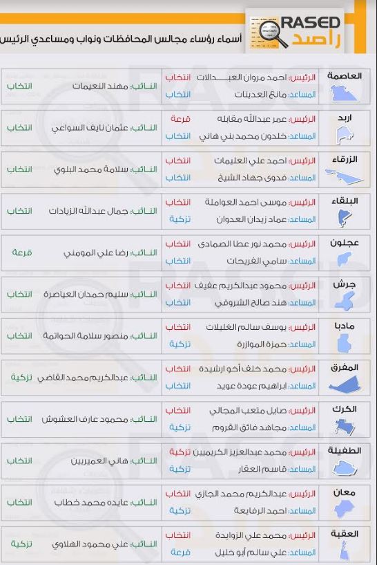 سيدة تحصد مقعد نائب رئيس مجلس محافظة معان بالانتخاب.3 معينين يحصدون مقاعد في مكاتب مجالس المحافظات.3 سيدات يحصدنّ مقاعد في مكاتب مجالس المحافظات.التزكية والقرعة تفرزان رئيس... |