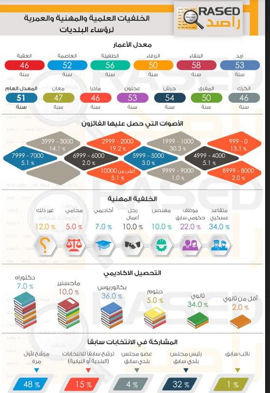 | راصد: 34% من رؤساء البلديات تجاوزوا الثانوية العامة |
