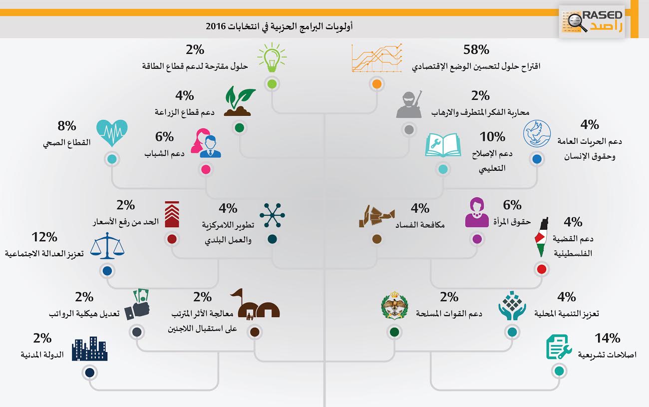 أظهرت دراسة حول توجهات الأحزاب الأردنية للانتخابات النيابية للعام 2016، أن 86% من تلك الأحزاب ستشارك في الانتخابات وأن 21% منها لا تثق بإدارة الهيئة المستقلة للعملية... |