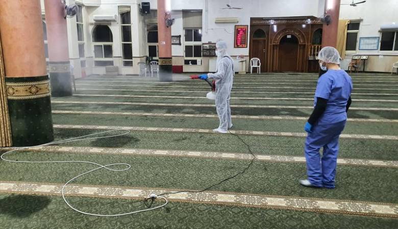 | تعقيم المساجد والكنائس وبيوت المسنين في رام الله |