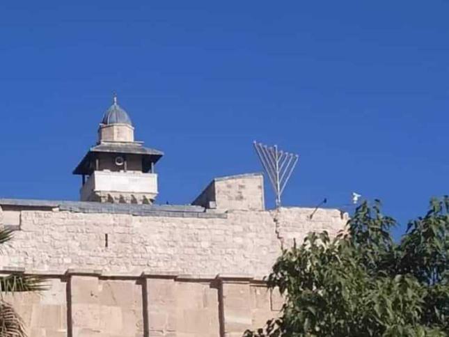 | مستوطنون يضعون شمعدانا على الحرم الإبراهيمي |