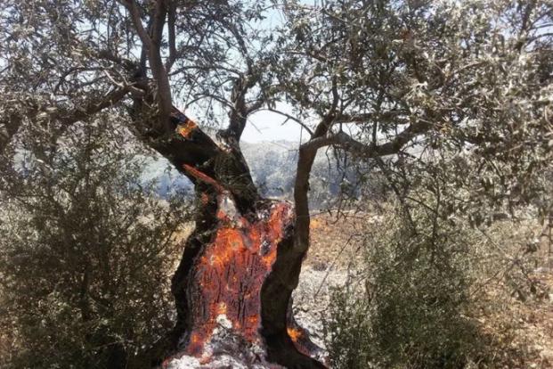 | المستوطنون يحرقون 1600 شجرة زيتون في بورين |