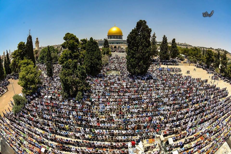 | عشرات الآلاف يؤدون العشاء والتراويح بالأقصى |