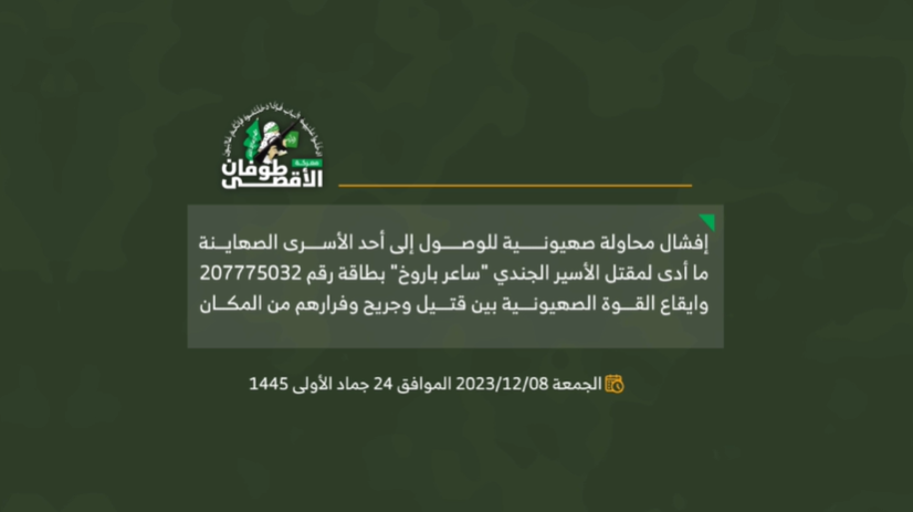 | كتائب القسام تنشر مقطعاً يظهر إفشال عملية تحرير جندي إسرائيلي أسير |
