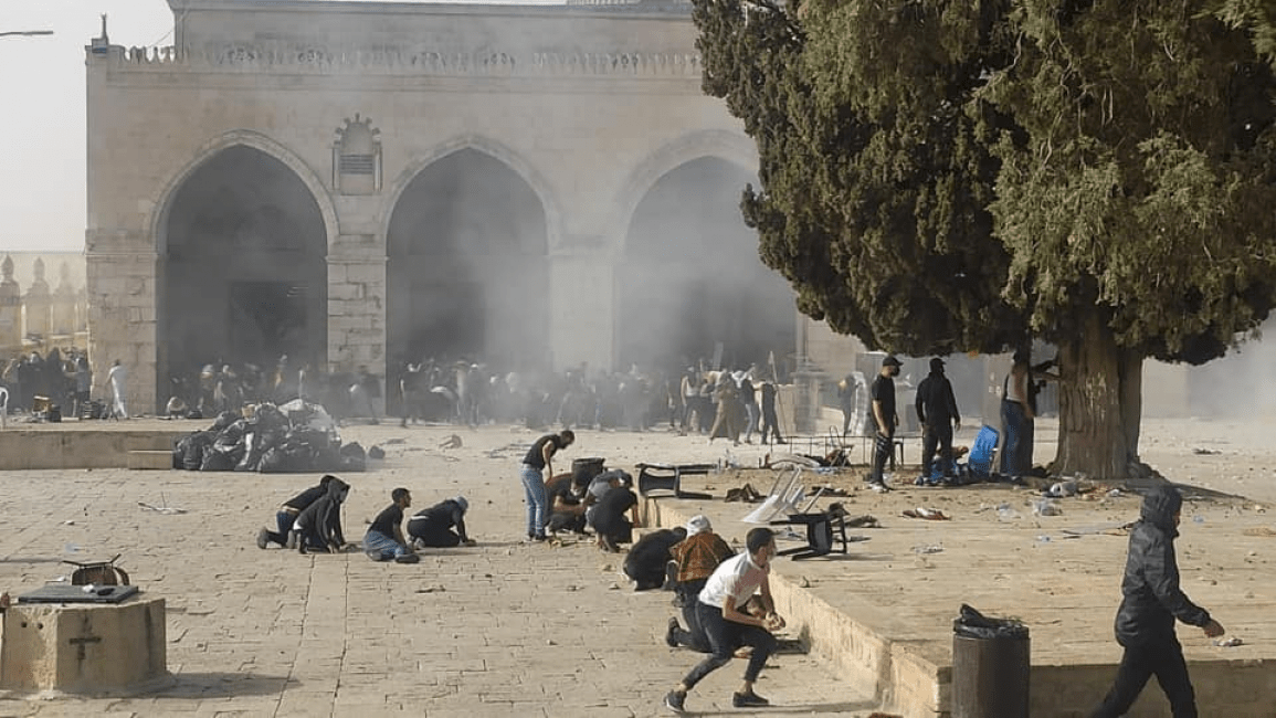 | إخلاء الأقصى بالقوة والسماح للمستوطنين باقتحامه |