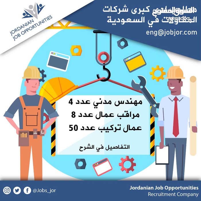 يسر شركة تسويق الفكاءات الاردنية للتوظيف ان تعلن عن توفر وظائف لدىكبرى شركات المقاولات السعودية – الرياض تطلب وظائفمهندس مدني عدد 4مراقب عمال عدد 8عمال تركيب 50يشترط خبرة... |